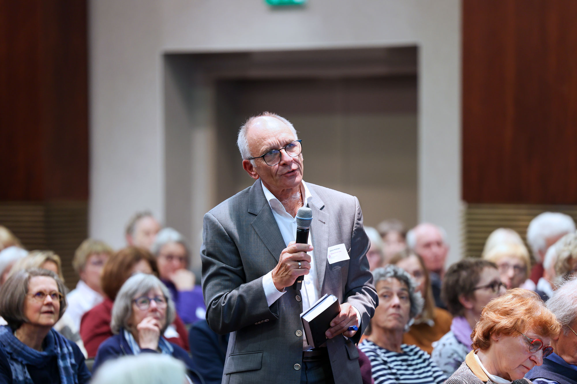 Herrn Dr. Jörg gelingt es, seine Zuhörer mitzunehmen auf eine spannende und sogar Mut machende pharmazeutische Reise zu Pathogenese, präventiven Möglichkeiten und neuen Therapieansätzen. Das Krankheitsbild einer Demenz, die sich in 50 – 70 Prozent der Fälle in einer Alzheimer Demenz äußert, sei definiert als ein fortschreitender Abbau erworbener kognitiver Fähigkeiten mit Beeinträchtigung im Alltag über mindestens mehrere Monate. Zuletzt gingen die im Langzeitgedächtnis abgespeicherten Erfahrungen verloren, berichtet Dr. Jörg. 2024 seien weltweit ca. 50 Millionen Menschen an Demenz erkrankt, bis 2050 rechne man mit einer Verdreifachung dieser Zahl. Der Erkrankungsbeginn setze häufig schon 15 – 30 Jahre vor der Diagnose ein. Durch eine frühzeitige Diagnose, z.B. mittels Uhrentest, Mini-Mental-Status-Test, Liquor- oder Blutdiagnostik, und adäquate Therapie lasse sich der Zeitpunkt des Verlustes der Unabhängigkeit um 5 – 10 Jahre hinauszögern, jedoch nicht aufhalten. Dr. Jörg beschreibt die bislang nicht abschließend geklärte Pathogenese als einen Teufelskreis vieler verschiedener Faktoren (darunter die Amyloid-ß-Kaskaden-Hypothese, P-Tau-Hypothese, mitochondriale Kaskaden-Hypothese, geringfügige chemische Veränderungen an der RNA, Reduktion regulierender Proteine), von denen – und das war seine ermutigende Botschaft – sich abgesehen von einer genetischen Prädisposition viele durch geistige Aktivität, soziale Interaktion, körperliche Aktivität wie alltägliche Bewegung und regelmäßige Spaziergänge sowie eine mediterrane Ernährung und einen gesunden Lebensstil mit ausreichend Schlaf positiv beeinflussen ließen.