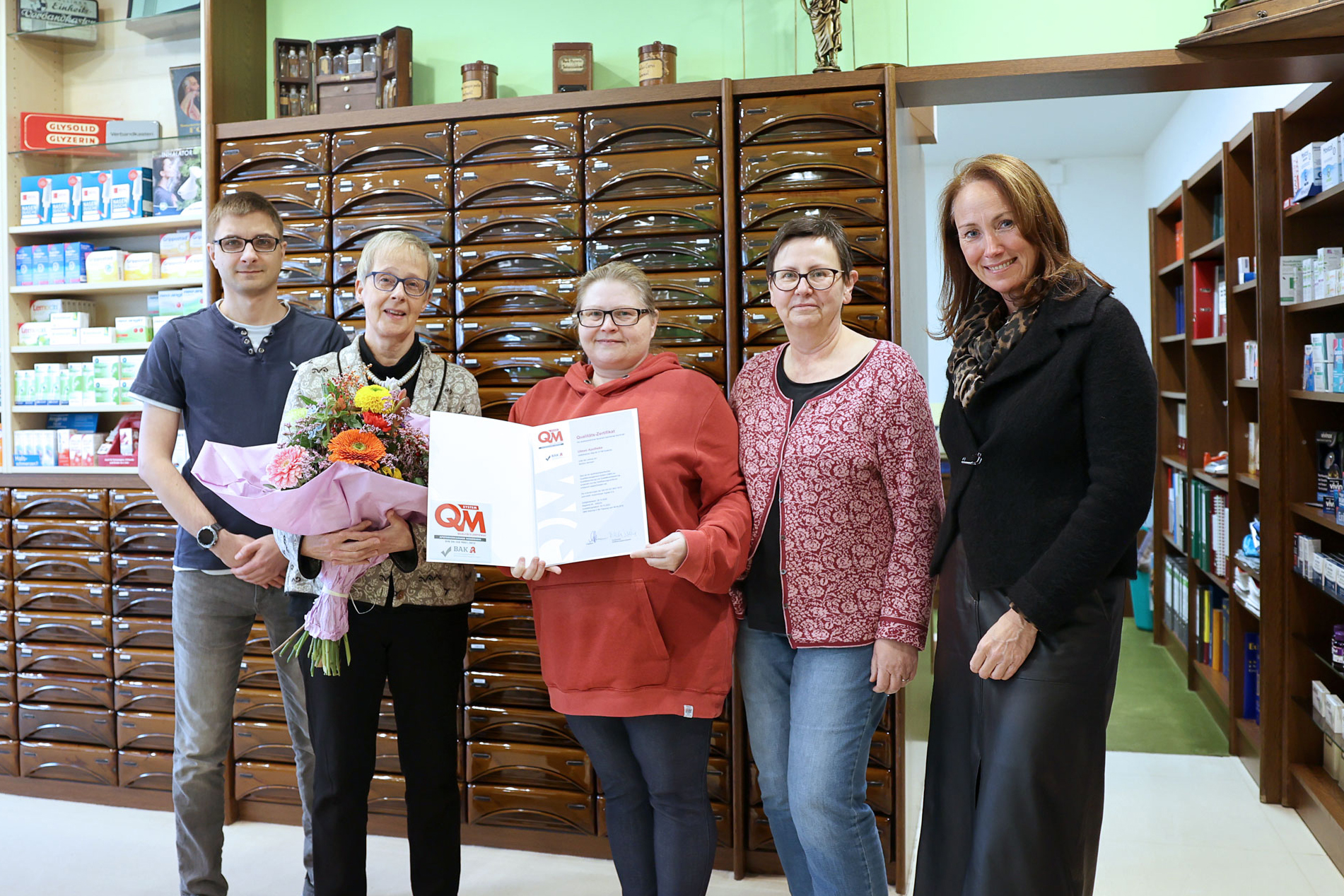 Die Ulmen-Apotheke steht damit stellvertretend für viele nordrheinische Apotheken, die Qualitätsmanagement nicht als Pflicht, sondern als gelebten Bestandteil ihres Alltags verstehen. Seit ihrer ersten Zertifizierung im Jahr 2010 hat die Apotheke ihr QM-System kontinuierlich weiterentwickelt und an neue Anforderungen angepasst – ein Einsatz, der sich in allen Arbeitsabläufen und im Teamgeist widerspiegelt.